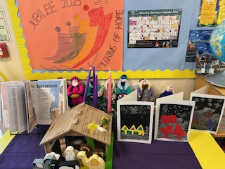 We created Christmas cards, hats, mats and pictures. We also decoratred our class windows and made our altar ready for Advent and Christmas.