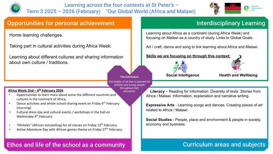 Our next IDL will be called ‘Our Global World- Africa and Malawi. During this topic we will learn about African dance, music, instruments and traditions. Then, we will start focusing particularly on Malawi and talk about global goals such as food sustainability, inequality and the right to learn.